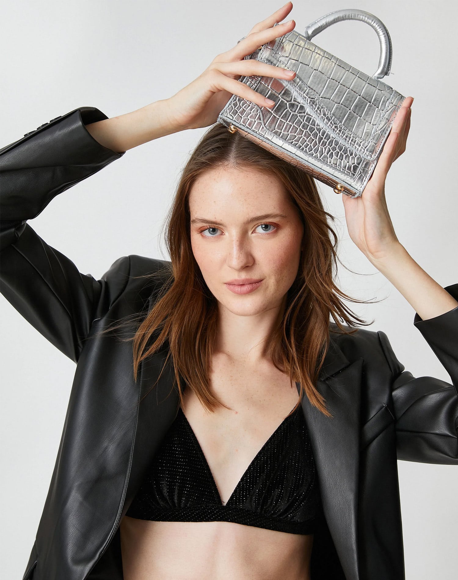 Women’s Evening Dress Bag Diagonal Shiny Strap Lined